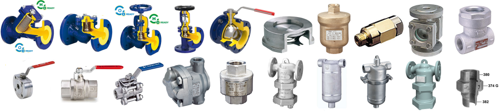 - Armaturi: Armaturile asigura siguranta, controlul si reglarea fluxului de fluide in instalatiile moderne, si se pot regasi urmatoarele: robineti apa/abur, robineti cu burduf, filtre de tip Y, ventile de unic sens, robinet de golire etc.